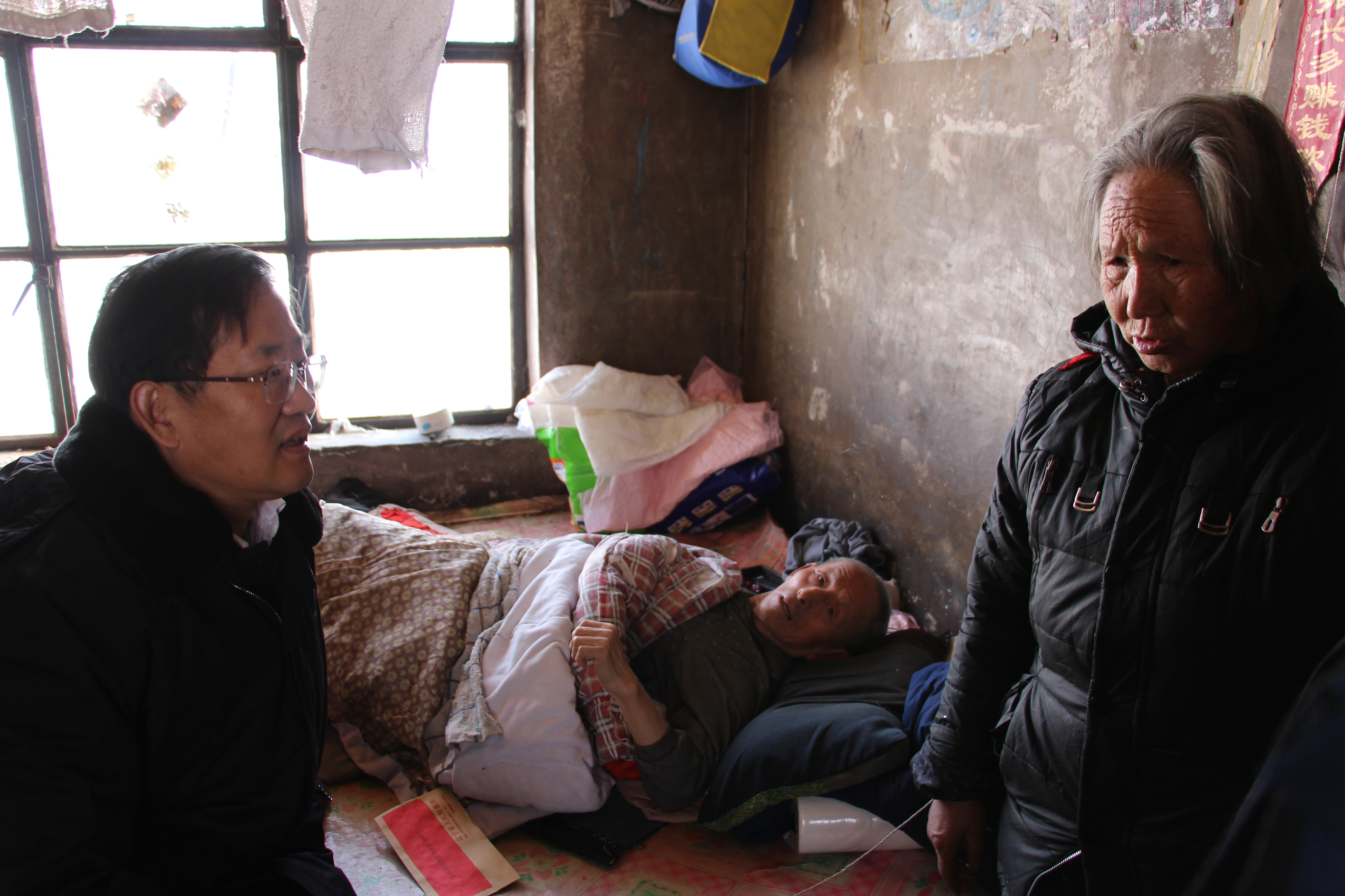 在夏家堡镇党委书记、镇长和驻村工作队同志的引导下,吴喆副检察长一行深入省院扶贫点杨家堡村,先后看望了贫困户夏天石、孙树芹。在两位贫困户家中,吴喆副检察长详细询问了他们的致贫原因、目前的生产生活情况,并代表省院党组和全体干警向两位贫困户致以新春祝福。吴喆副检察长还鼓励困难群众坚定信心,坚信党和政府会千方百计帮助困难群众摆脱贫困现状,走上共同致富的道路。随后,吴喆副检察长还代表省院党组为两位贫困户送去慰问金和米、面、油等生活必需品。
