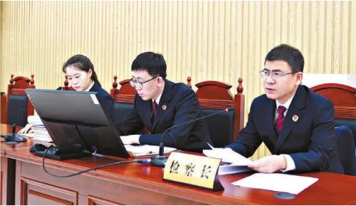 辽宁takse69 党组书记、检察长高鑫(右一)出庭履职。